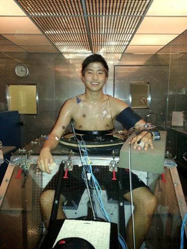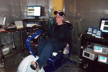 The research facility is equipped with three stand alone environmental temperature and humidity controlled chambers. The smallest chamber (8’ wide x 10’ long) is used for training and adaptations studies to extreme heat (air temperature >50°C).